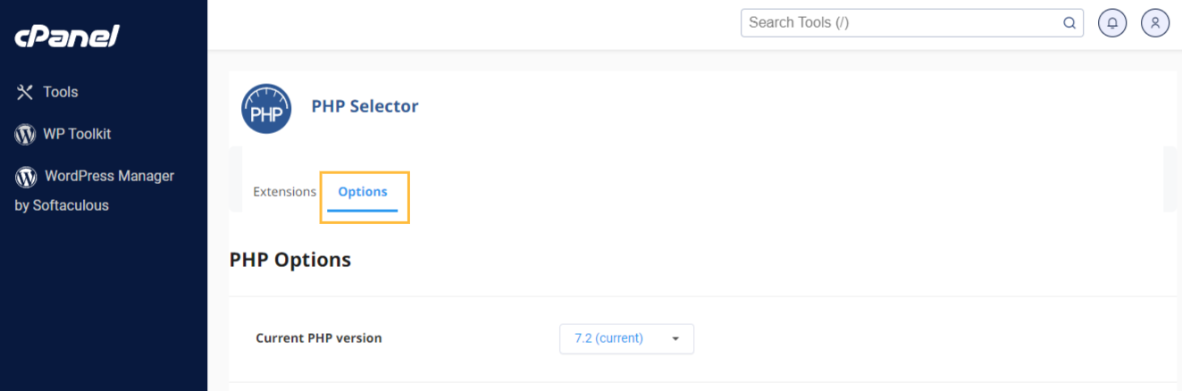 2. Find the “Select PHP Version“.